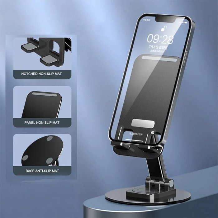360°Rotation: Featuring a 360° rotatable axis connecting with the base, this Mobile Stand allows you to swivel your phone to any angle. You can easily share the screen with your friends while using Mobile Stand Holder, and keeps the phone steady at all times.